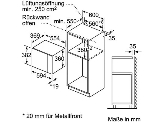 Geeignet für 60 cm breite Hochschränke. Maße und Einbauhinweise zu diesem Gerät gemäß technischer Zeichnung beachten. Komfort: Memory-Funktion (1 Speicherplatz); LED-Innenbeleuchtung; Mikrowelle und Grill einzeln und in Kombination nutzbar. LED-Display, Elektronikuhr.