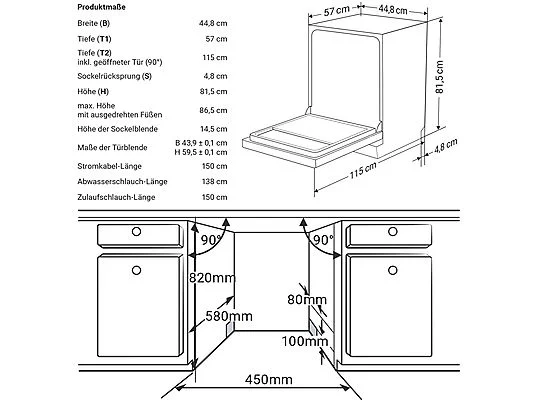KKT KOLBE Geschirrspüler Spülmaschine DW4505ED Geschirrspüler (teilintegrierbar, 45 cm breit, C)