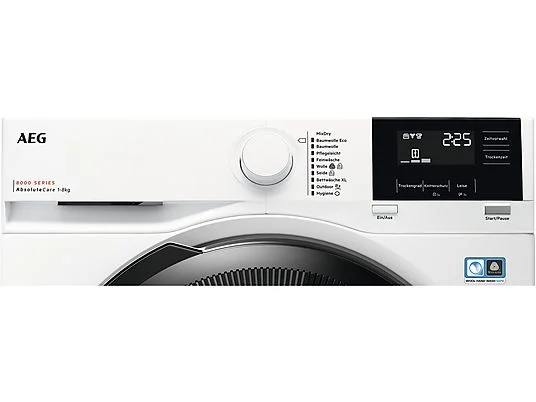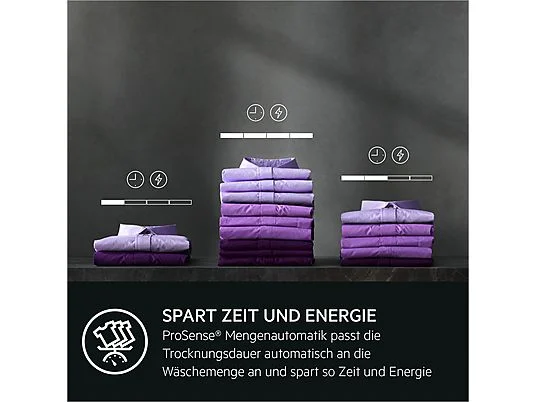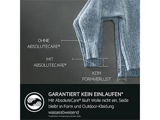 Wäschetrockner mit Wärmepumpentechnologie, AbsoluteCare® System, SensiDry®, ProSense® – Mengenautomatik , Inverter Motor, ProTex Schontrommel, Gerätetiefe: 66.3 cm, extra große Einfüllöffnung, 5.28 l Kondensatbehälter, oben links, Anzeigen für Sieb, Behälter, Wärmetauscher, Verlängerter Knitterschutz, Unterschiebbar bei 85 cm Nischenhöhe, Wasserhärteprogrammierung, Leise Option. |
