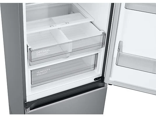 Die Optimal Fresh+ Schublade der SAMSUNG RL38C775CS9/EG Kühlgefrierkombination ermöglicht eine flexible Lagerung von Lebensmitteln. Sie ist in zwei Bereiche unterteilt, deren Temperatur individuell eingestellt werden kann. So kannst du beispielsweise Fleisch und Fisch bei einer niedrigeren Temperatur lagern, während Obst und Gemüse bei einer höheren Temperatur frisch bleiben. Ein Schieberegler ermöglicht die einfache Anpassung der Temperaturzonen. Diese Funktion hilft, die Frische und Qualität deiner Lebensmittel länger zu erhalten.